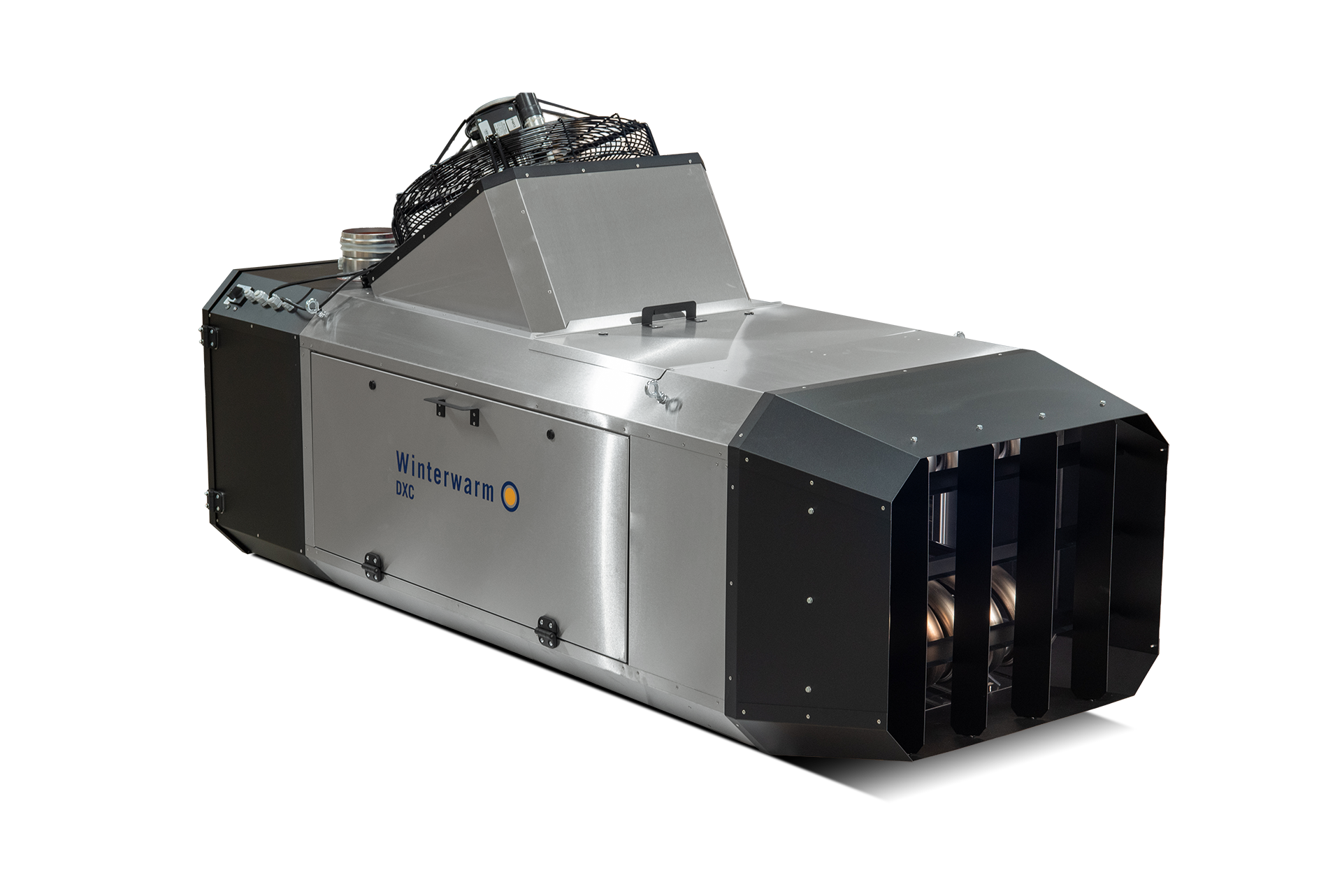 The Winterwarm DXC is a gas-fired warm air heater with room-sealed fresh air and flue exhaust system, specifically designed for poultry houses.