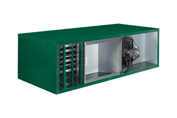 An extra discharge cone is available to guide the flow of warm air along the side of the farm as well as DXF fans.