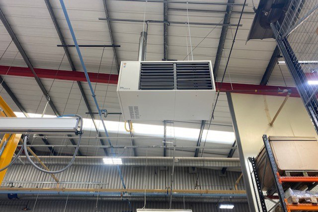 Having initially met at a North East Exhibition during a “Meet the Buyer” event PremiAir Comfort Ltd were invited to undertake a site survey in order to establish and design a suitable replacement factory space heating system. Having considered a number of alternative space heating options and being aware of the need to avoid floor standing units since floor space is a premium on site PremiAir Comfort proposed the use of 7 No. Winterwarm, Gas Fired, TR100 suspended heaters together with 10 No. WCU40 High Level De-stratification fans.